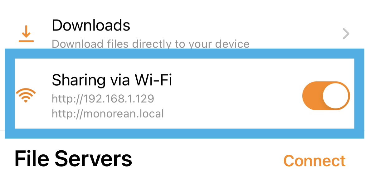 You will see two web addresses show up under ‘Sharing via WiFi’. Write down both addresses.