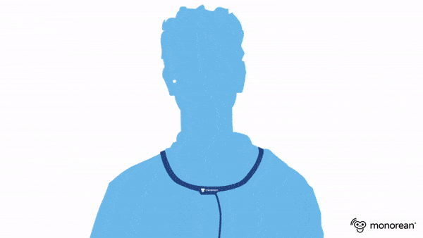 The Monorean earpiece is completely wireless, so there are no cables hanging from your ear. The paper-thin collar from Monorean Pro transmits the signal to your ear. The Monorean Pro collar is connected directly to the Monorean Pro control box, and can be simply worn around your neck.