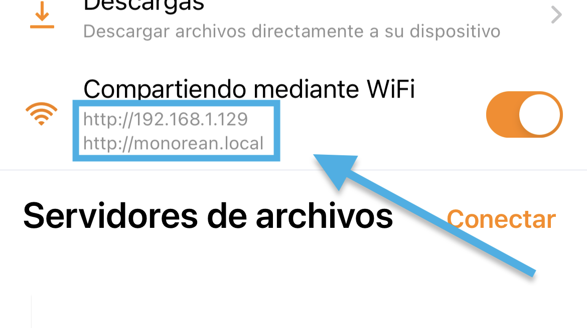 Podrás comprobar como aparecen dos direcciones web debajo de ‘Compartiendo mediante Wifi’, deberás de anotar ambas direcciones.