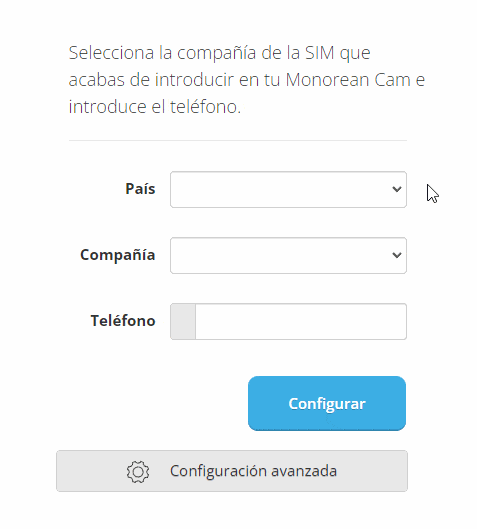 Una vez rellenes estos tres datos, presiona el botón Configurar. Monorean Inbox iniciará la configuración en tu Monorean Cam: