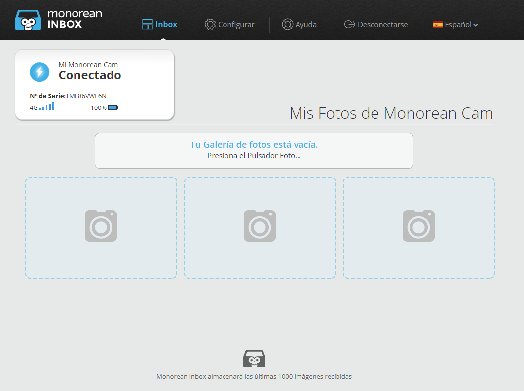 Desde la galería de imágenes podrás ver llegar en tiempo real las imágenes enviadas por Monorean Cam.
