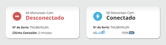 Desde Monorean Inbox podrás monitorizar el estado de tu Monorean Cam. Desde la galería de imágenes de tu Monorean Cam, en la parte superior izquierda podrás ver una burbuja con el estado de tu Monorean Cam.
